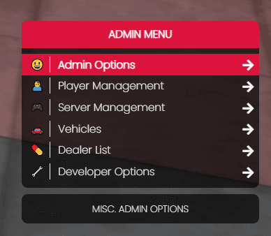 - 管理者メニューは幅広い機能を備えており、人気のメニューリソース menuV を依存関係として利用しています。メニューを開くための基本権限レベルは管理者ですが、godレベルの権限でもアクセスできます。メニューは簡単に拡張でき、ユーザーが望むだけのオプションを追加できます。