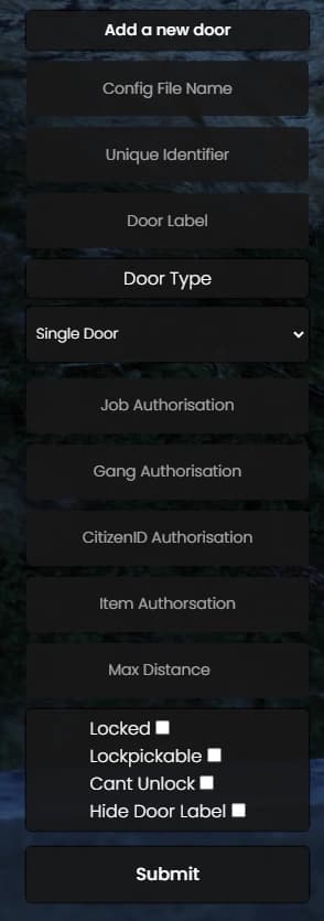 Config.CommandPermission = 'god' -- permission level for creating new doors